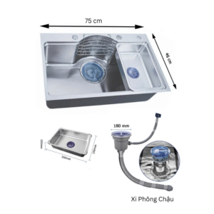 Phụ kiện đi kèm: xi phông, giá úp bát inox, chậu rửa nhỏ,