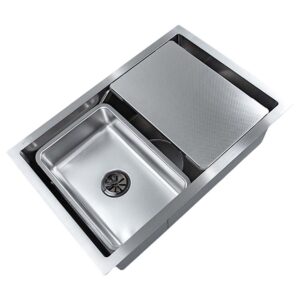 - Thiết kế gờ hạ bậc thông minh: Tích hợp rổ phụ + chậu nhỏ và siphon, mang đến không gian làm việc tiện lợi và ngăn nắp.