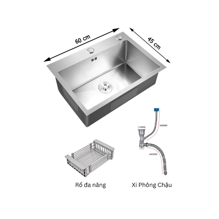 Phụ kiện đi kèm: Siphon, giá úp bát inox