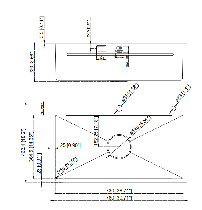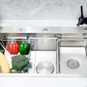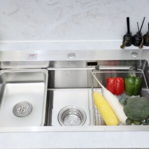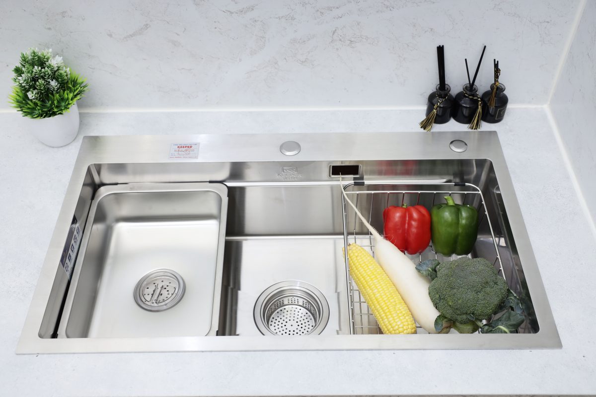 Phụ kiện đi kèm: Siphon, giá úp bát inox, chậu rửa nhỏ,